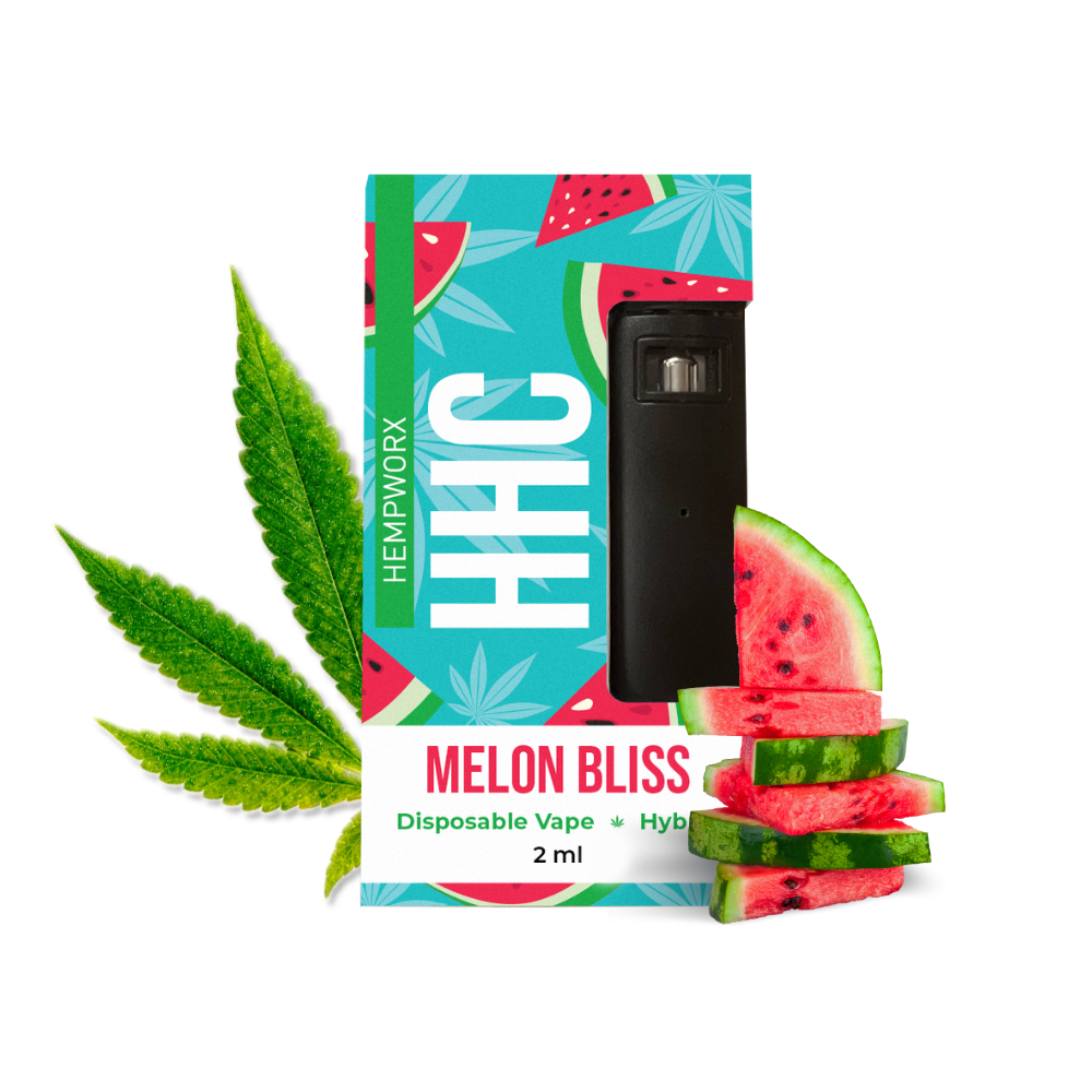 Discover balance with the Melon Bliss HHC Disposable Vape by HempWorx. Each puff delivers refreshing watermelon flavor and the smooth consistency of CCell ceramic atomizer technology, designed for efficient delivery of hemp-derived HHC (hexahydrocannabinol). Known for its calming yet creative effects, HHC offers an uplifting experience that’s gentler than traditional THC. Compact, discreet, and rechargeable via USB-C, this 2ml disposable vape is perfect for on-the-go enjoyment. Crafted with a modern, durable design and compliant with federal THC limits (<0.3% Delta-9 THC), Melon Bliss combines superior performance with delicious flavor. Must be 21+.